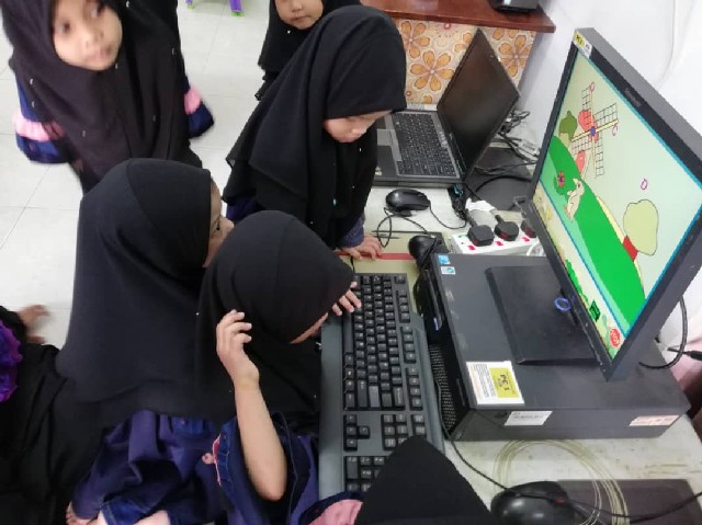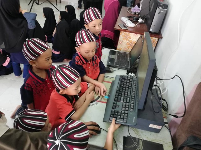 Bermula dengan tayangan video mari mengenal keselamatan diri dan asas komputer. Peserta dibahagi kepada 3 kumpulan dan mereka diberi peluang untuk menggunakan peralatan komputer.