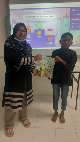 25 Ogos 2024 | Aktiviti TerkiniPada 24 Ogos 2024, telah berlangsung Kuiz Merdeka. Kelas ini berlangsung di NADI Padang Besar Selatan bermula pada pukul 3:30 petang sehingga 04:30 petang. Kelas ini bertujuan adalah untuk menguji pengetahuan pelajar mengenai Kemerdekaan Malaysia.