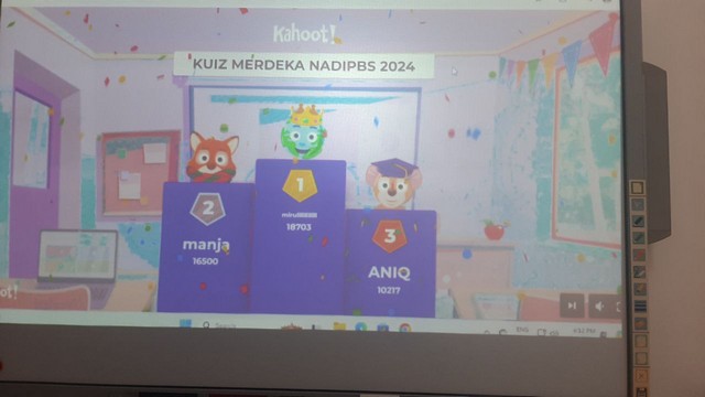 Staf NADI telah mengadakan Kuiz Kemerdekaan menggunakan Kahoot. Pelajar yang mengikuti kelas ini telah menjawap soalan kuiz berkaitan Kemerdekaan. Melalui kuiz ini, dapat meningkatkan lagi pengetahuan mereka mengenai Kemerdekaan.