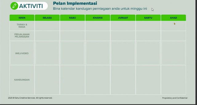 Sepanjang program ini berlangsung, Encik Azhar memberi penerangan mengenai cara untuk menggunakan sistem kalender kandungan. Seterusnya, Encik Azhar memberi tips untuk sediakan posting hari perayaan atau penting dengan awal seperti Selamat Hari Raya, Merdeka!, Merdeka, Happy Diwali dan Gong Xi Fa Cai. Selain itu, Encik Azhar memberi penerangan mengenai pemasaran digital yang perlu dijaga secara konsisten dan berterusan. Akhir sekali, Encik Azhar memberi penerangan mengenai objek dan keberhasilan seperti kesedaran untuk mencapai 10000 pelanggan dalam satu bulan, minat dan keinginan seperti 2000 penglibatan melalui likes, comments dan shares dan tindakan, contohnya 100 pelanggan membuat pembelian dalam 1 bulan.