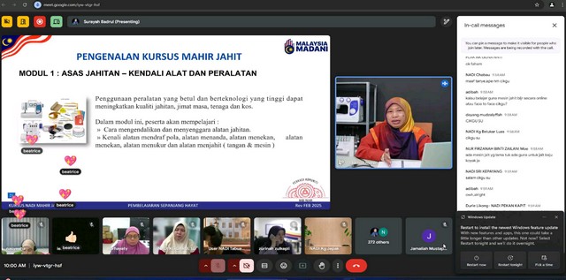 4 Februari 2025 | Aktiviti TerkiniPada 03 Februari 2025, telah berlangsung NADI MAHIR Menjahit sesi 1 - i. Kelas ini berlangsung di NADI Padang Besar Selatan bermula pada pukul 09:30 pagi sehingga pukul 10:30 pagi. Tujuan kelas ini diadakan adalah untuk mencapai Road To 1 Million ahli NADI.