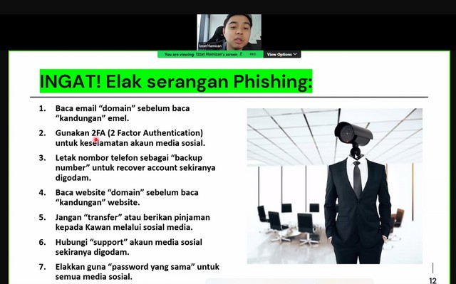 Dengan adanya program seperti ini, ianya dapat meningkatkan pengetahuan peserta mengenai Keselamatan Akaun Media Sosial Bagaimana Phishing Boleh Mengambil Akaun. Selain itu, dapat mengeratkan hubungan di antara staf NADI dan peserta.