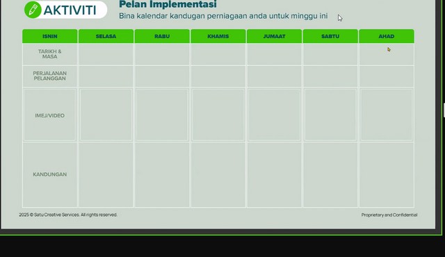 Sepanjang Webinar ini berlangsung, Encik Azhar memberi penerangan mengenai cara untuk menggunakan sistem kalender kandungan. Encik Azhar memberi tips untuk sediakan posting hari perayaan atau penting dengan awal seperti Selamat Hari Raya, Merdeka!, Merdeka, Happy Diwali dan Gong Xi Fa Cai. Selain itu, Encik Azhar memberi penerangan mengenai pemasaran digital yang perlu dijaga secara konsisten dan berterusan. Akhir sekali, Encik Azhar memberi penerangan mengenai objek dan keberhasilan seperti kesedaran untuk mencapai 10000 pelanggan dalam satu bulan, minat dan keinginan seperti 2000 penglibatan melalui likes, comments dan shares dan tindakan, contohnya 100 pelanggan membuat pembelian dalam 1 bulan.
