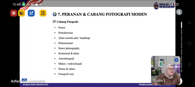 Sepanjang kelas ini berlangsung, guru MAHIR Foto menerangkan mengenai pengenalan fotografi iaitu berdasarkan prinsip cahaya, optik dan kimia. Seterusnya, guru MAHIR Foto menerangkan mengenai asas pinhone camera / obscuta camera iaitu blur, sebenar (real) dan terbalik (upside down). Selain itu, guru MAHIR Foto menerangkan mengenai sejarah fotografi iaitu asal-usul fotografi, zaman penemuan : fotografi awal, revolusi teknologi, era komersial & masa untuk orang ramai, fotografi warna & peranan dalam media, era digital dan peranan & cabang fotografi moden. Akhir sekali, guru MAHIR Foto menerangkan mengenai jenis -jenis camera seperti view camera, range finder camera, twin lens reflect camera, singel lens reflect camera dan digigal single lens reflect.
