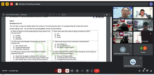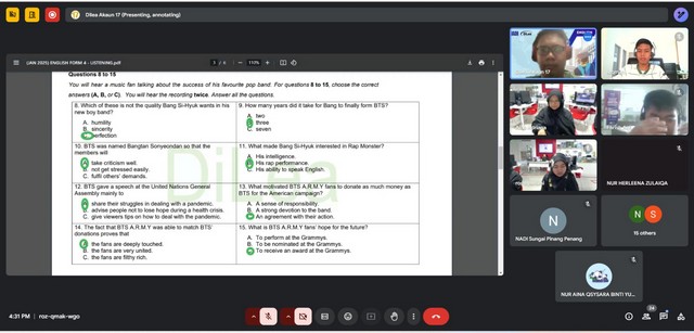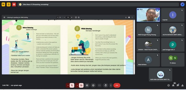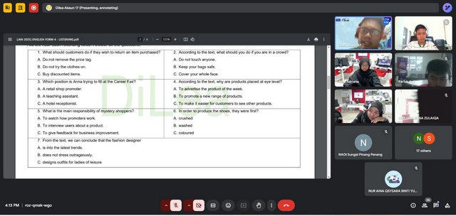 Sepanjang kelas ini berlangsung, guru DiLea mengadakan listening iaitu menjawap soalan berdasarkan audio yang diberikan dan guru DiLea menerangkan mengenai prive tag.