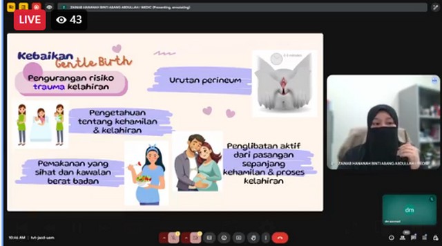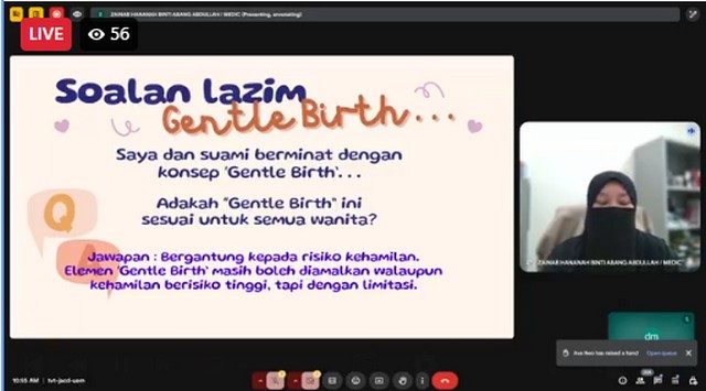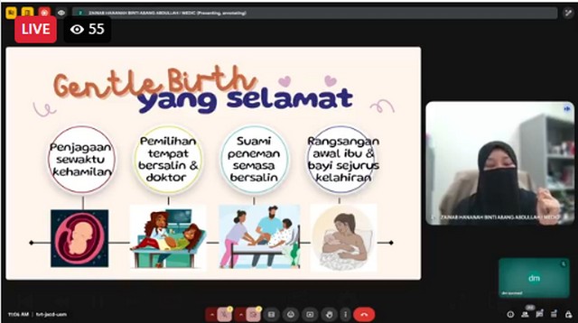 Sepanjang webinar ini berlangsung, Peserta menonton Google Meet mengenai Trend Gentle Birth Adakah Ia Sesuai untuk Anda? Dr. Zainab Hananah menerangkan mengenai apa itu gentle birth. Seterusnya, Dr. Zainab Hananah menerangkan mengenai siapa yang boleh memilih pendekatan ini. Selain itu, Dr. Zainab Hananah menerangkan adakah kaedah ini benar-benar selamat dan kurang sakit. Akhir sekali, Dr. Zainab Hananah menerangkan mengenai persiapan fizikal dan mental yang diperlukan.