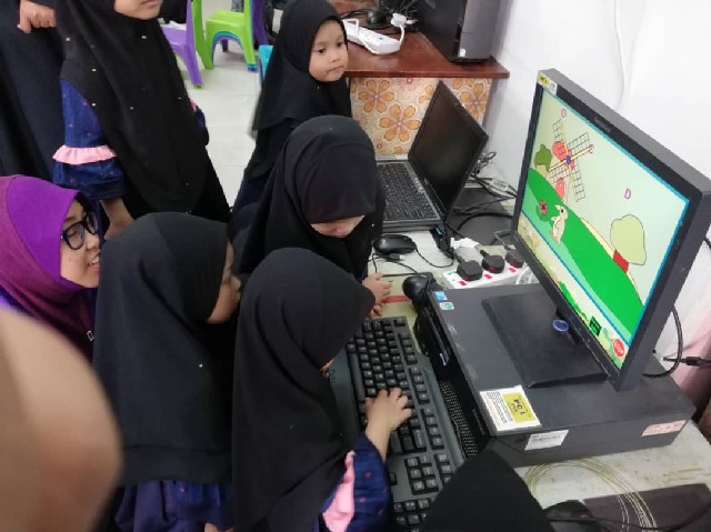 Bermula dengan tayangan video mari mengenal keselamatan diri dan asas komputer. Peserta dibahagi kepada 3 kumpulan dan mereka diberi peluang untuk menggunakan peralatan komputer.