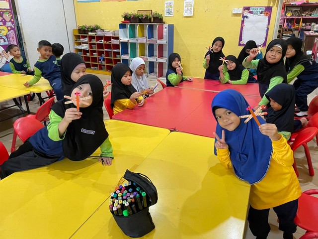 Pelajar tadika mengenal pasti rupa bentuk pepatung, belajar untuk memilih warna yang sesuai untuk diwarnakan pada kayu ais krim untuk membina badan dan sayap pepatung sambil dibantu oleh staf NADI dengan meletakkan gam pada kayu ais krim untuk membina badan pepatung.