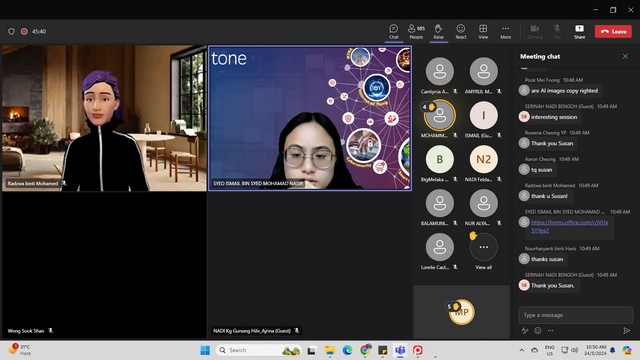 25 Mei 2024 | Aktiviti TerkiniPada 24 May 2024, telah berlangsung Staff Training – Artificial Intelligence. Taklimat ini berlangsung secara dalam talian (Microsoft Team). Taklimat ini diberikan oleh pihak Redtone, bertujuan untuk memberi pendedahan tentang Artificial Intelligence (AI). Pihak Redtone memberi penerangan mengenai apa itu Artificial Intelligence serta penerangan mengenai peralatan (tools), website, dan yang boleh digunakan berkaitan AI.